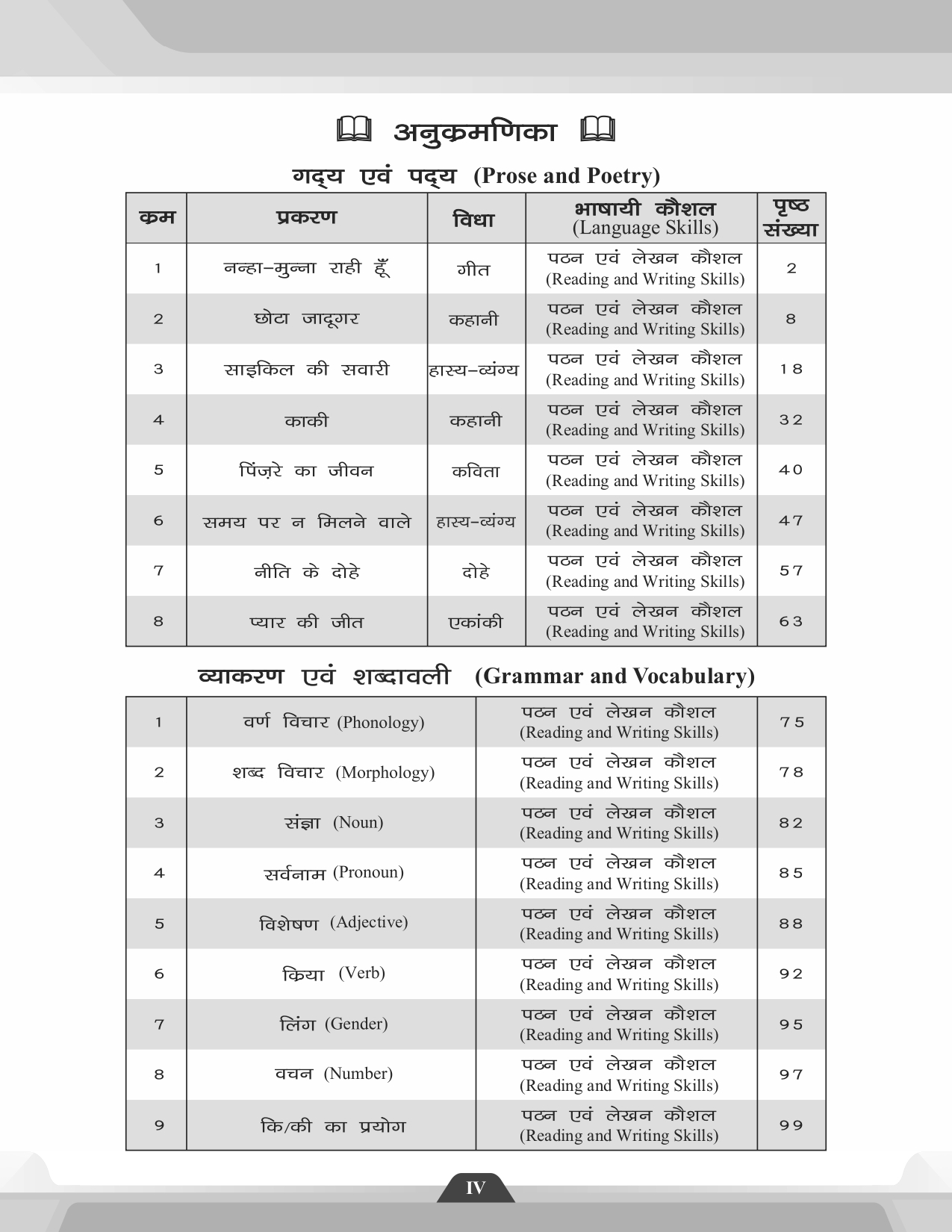 - पाठ्यपुस्तक, अभ्यासपुस्तिका, व्याकरण एवं रचनात्मक लेखन एक ही पुस्तक में